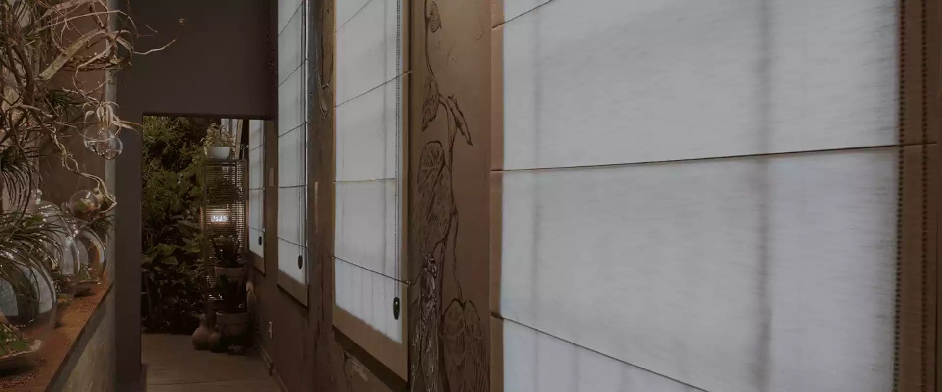 Disponíveis em diversas texturas e cores, incluindo tecidos para proteção solar sustentáveis e certificados, que oferecem conforto térmico, com o bloqueio substancial da entrada de calor e radiação solar.