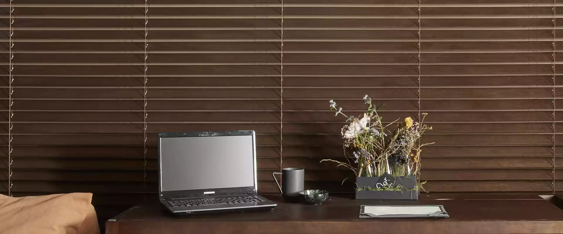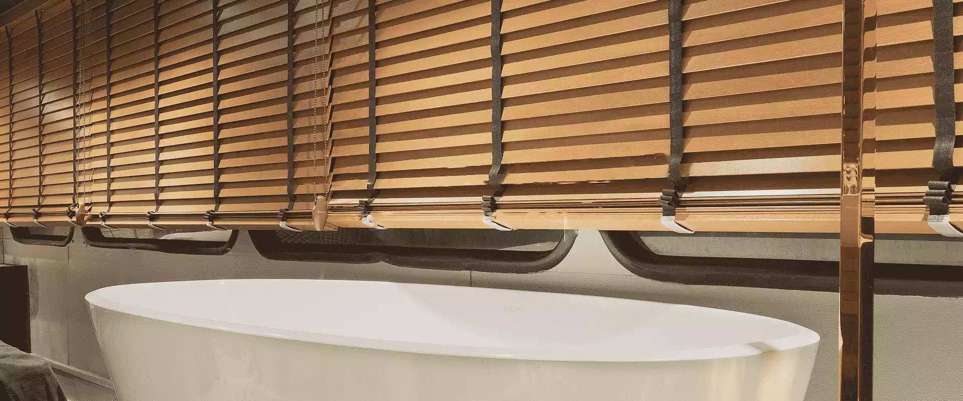 Persianas de 50mm fabricadas a partir de madeiras retiradas de florestas com manejo sustentável e reciclagem de todo o resíduo proveniente de sua fabricação.